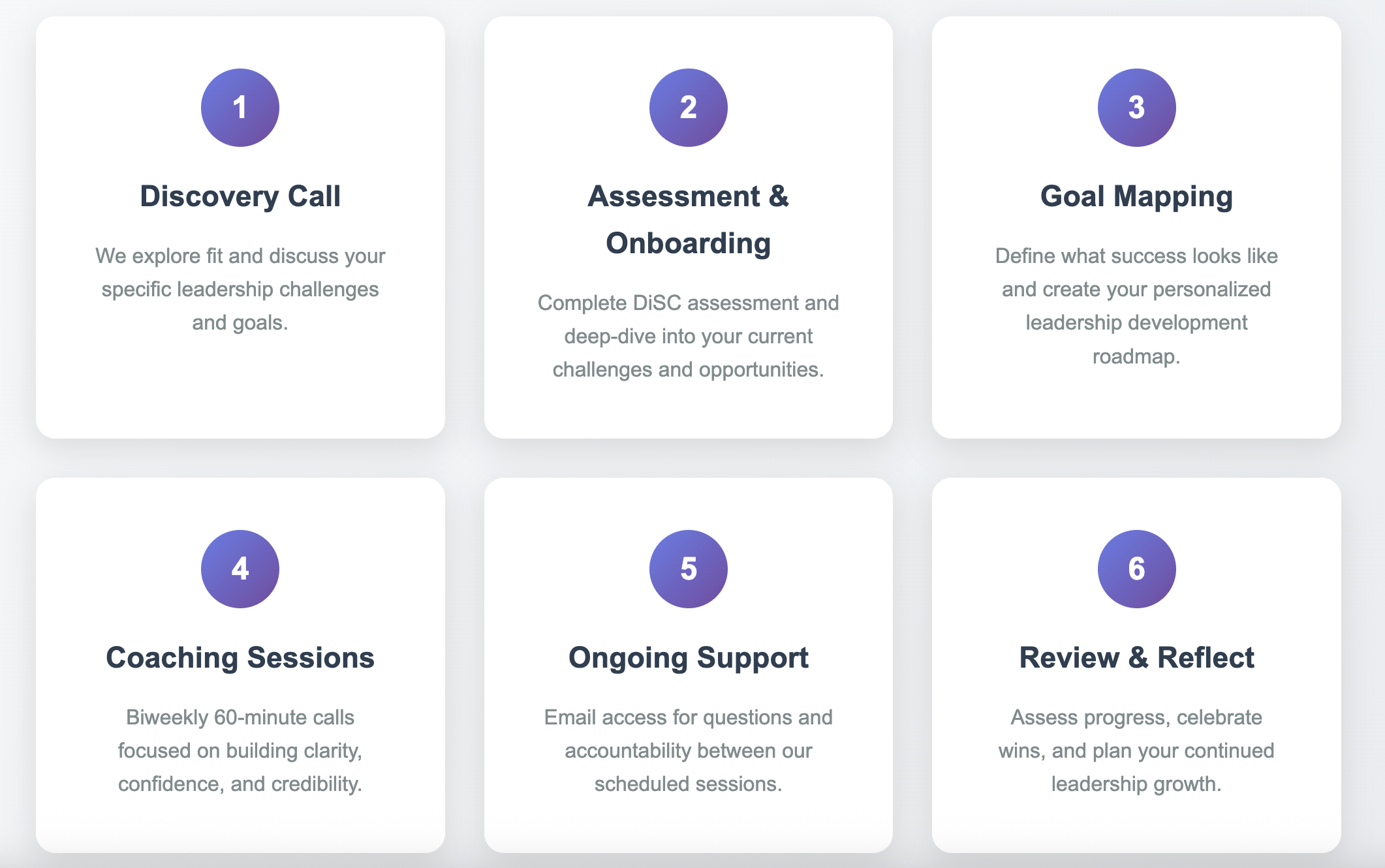 Includes bi-weekly sessions, tools, email support, and a customized leadership plan.